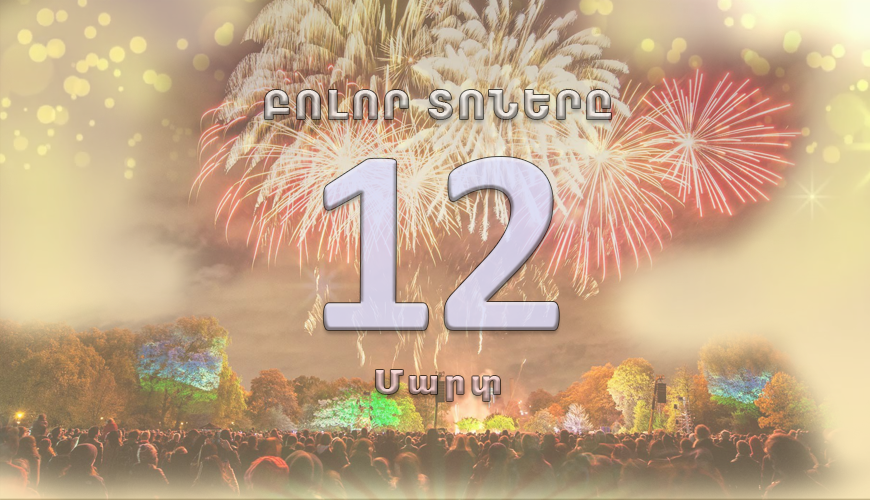 Մարտի 12-ը Արեգակի և Երկրի, Գլաուկոմայի դեմ պայքարի, Ալֆրեդ Հիչքոկի, Կիբեր գրաքննության դեմ պայքարի, Դպրոցական սննդի միջազգային, Գոտկատեղի պայուսակի, Արքայախնձորի օրն է: