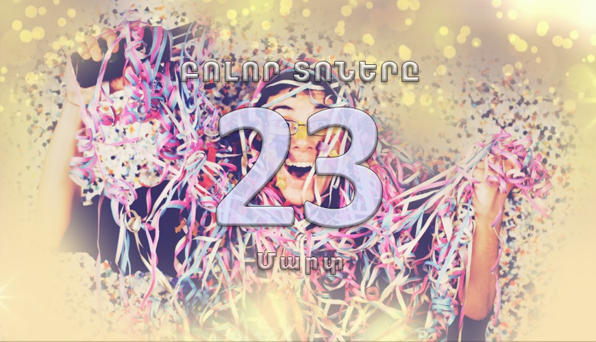 Մարտի 23-ը Օդերևութաբանության, OK-ի, Աթեիստի, Շան ձագերի, Չիփսերի և սոուսների, Երկրին չբախվելու, Լռության, Երկրին չբախվելու, Ծովի, Տղամարդկանց համերաշխության, Գեղեցիկ հայացքի, Միանման գուլպաների օրն է: