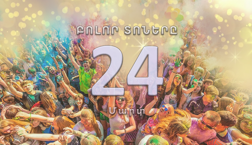 Մարտի 24-ը Տուժածների արժանապատվության և մարդու իրավունքների կոպիտ խախտումների նկատմամբ ճշմարտության հաստատման իրավունքի, Պալարախտի դեմ պայքարի, Դեպրեսիայի դեմ պայքարի, Շոկոլադի միջի չամիչի, Պանրով սթեյքի, Կյանքի օրն է: