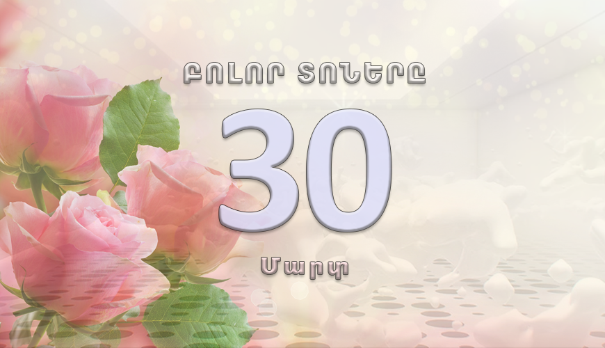 Մարտի 30-ը TB-303-ին երախտագիտության, Երկբևեռ խանգարման, Իդլիի, Վիետնամի պատերազմի վետերանների, Վիրտուալ արձակուրդի, Սյուարդի, Մատիտի, Հնդկահավի վզիկով ապուրի, Այգում զբոսնելու, Տեղում ամեն ինչ վերահսկելու, Արևի հետ գրկախառնվելու օրն է: