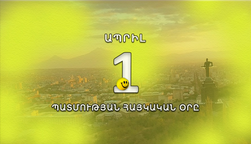Ապրիլի 1-ը Ծիծաղի (հիմարների), Թռչունների, Ժանյակագործության, Հանածոյի, Կոնյակի ծննդյան, Դոլարի ծննդյան, Ուտելի գրքի, Մեկ ցենտի, Հույսի, Թթխմորով հացի, Գրադարանում ակնթարթային լուսանկարների, Երգիծանքի և հումորի օրն է: