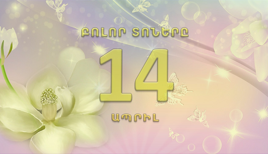Ապրիլի 14-ը հանկարծակի ծիծաղի (փռթկալու), մռթմռթացող կանաչուկների, նախկին ամուսնու, պեկան ընկույզի, Հայացքը երկնիքն հառելու, դելֆինների օրն է։