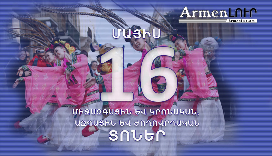 Մայիսի 16-ը Ջութակի, Վիսկիի, Կենսագիրների, Մատուցողների, Լույսի, Գաղթող ձկների, Կիտրոնի ծառ տնկելու, Հինգ ցենտի, Պրիսինգի, Խորովածի, «Միմոզա» կոկտեյլի, Հարևանի համար որևէ լավ բան անելու, Ծովային կապիկների, Տանիքագործի օրն է։