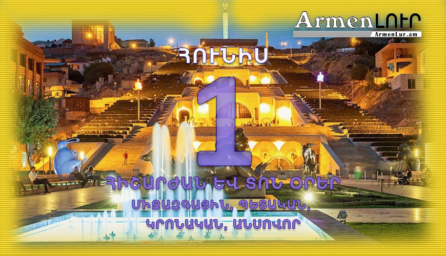 Հունիսի 1-ը  Երեխաների, Ծնողների, Կաթի, Սեղանի խաղերի, Վիճակ գցելու, Որևէ հաճելի բան ասելու, Ոտաբոբիկ քայլելու, Զեյթունի, Պնդուկով տորթի, Ծիծաղի, Սիրո կղզու, Եղունգի լաքի օրն է։