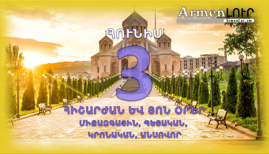 Հունիսի 3-ը Վազքի, Հարթաթաթության, Հեծանիվի, Անկարգելի, Կրկնության, Ձվի, Դերձակների, Շոկոլադե անանուխային թխվածքաբլիթի, Ձյան մասին հիշողությունների, Գործալիքի օրն է։