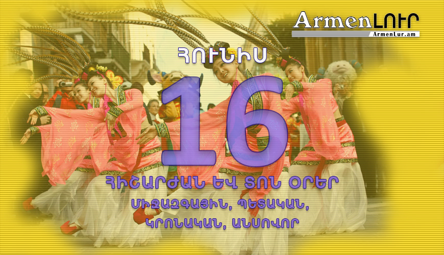 Հունիսի 16-ը Ընտանեկան դրամային փոխանցումների, Տնային սպասուհիների, Ծովային կրիայի, Երեք թղթե նավակներին հեռավոր նավարկության ուղարկելու, Թուփաքի ծննդյան, Թարմ բանջարեղենի, Օշարակի օրն է։