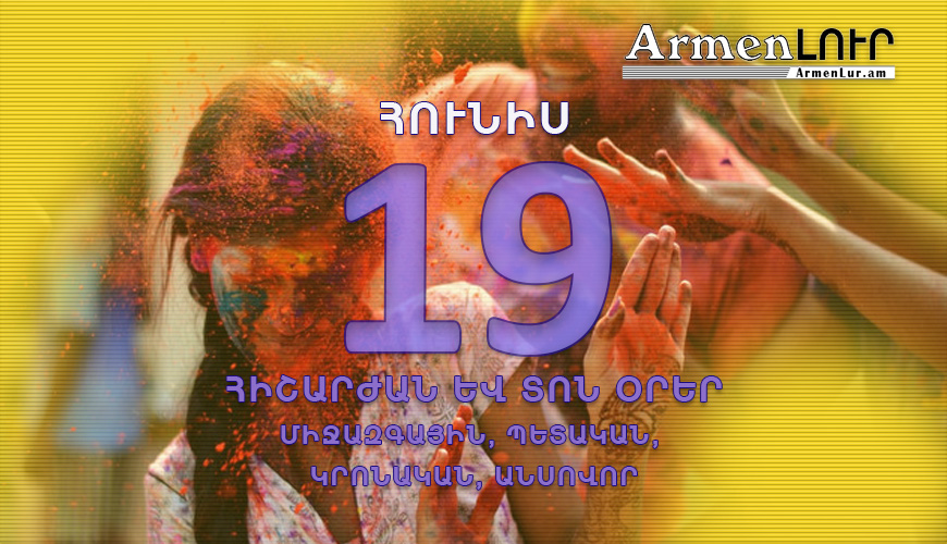 Հունիսի 19-ին Զբոսանքի, Մանկական ֆուտբոլի, Տուփի, Կիբերվախեցումները կանխելու, Գարֆիլդ կատվի, Կապույտ հագուստի, Անճոռնի շնիկների, Ժամացույցների, Տանն աշխատող հայրերի, Ապտակի, Ամպերին հետևելու օրն է։