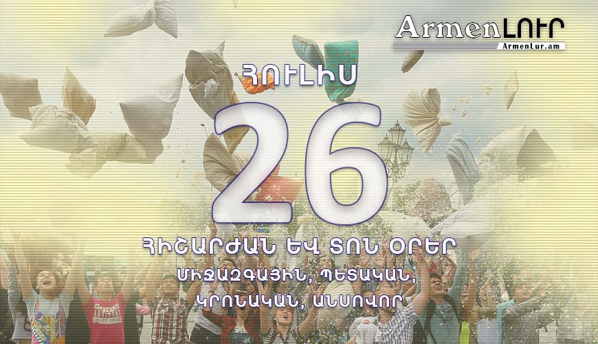 Հուլիսի 26-ը Միաձայնության, Էսպերանտոյի, Ամեն ինչ կամ ոչինչ ձեռնարկելու, Պոզաձև թխվածքի, Կաթնասրճային կոկտեյլի, Հանելուկ ասելու օրն է։