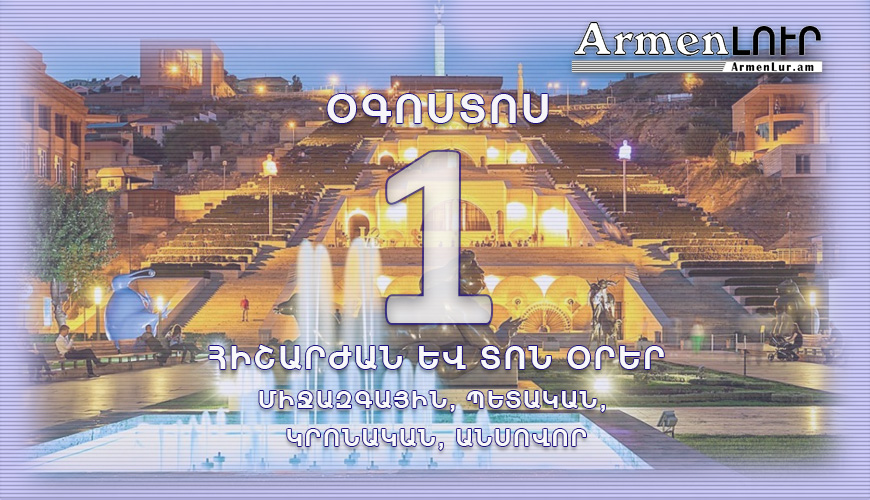 Օգոստոսի 1-ը Երեխաներից հանգստանալու, Մաջոնգի, Ծաղրածուների, Պահածոների, Կրծքով կերակրելու, Ավազե դղյակների, Սարդ-մարդու, Մեղրասպիրտի, Մանանեխի, Ընկերուհիների, Երկվորյակների, Կանացիության, Թղթե անձեռոցիկների օրն է։
