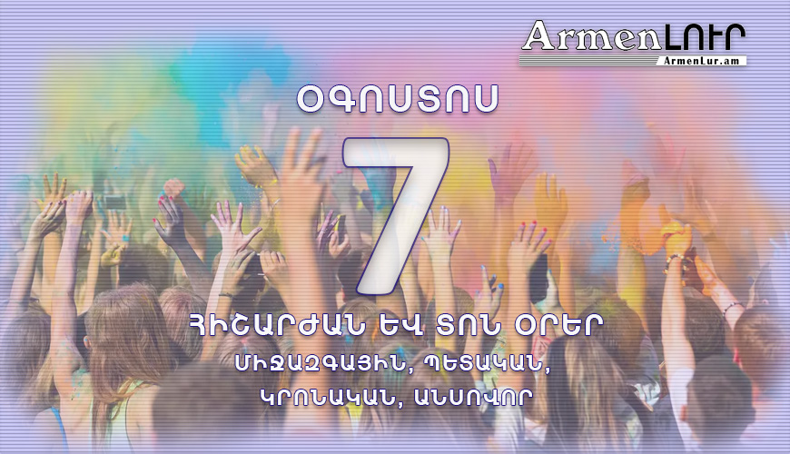 Օգոստոսի 7-ը Գարեջրի, Ծերերին խնամողների, Պրոֆեսիոնալ խոսնակների, Անփույթ փաթեթավորման, «Ծիրանագույն սրտի», Փարոսի, Ջրագնդակների, Սերուցքով արքայամորու, Բրահամ, Ամուրիների, Աստղեր համրելու օրն է։