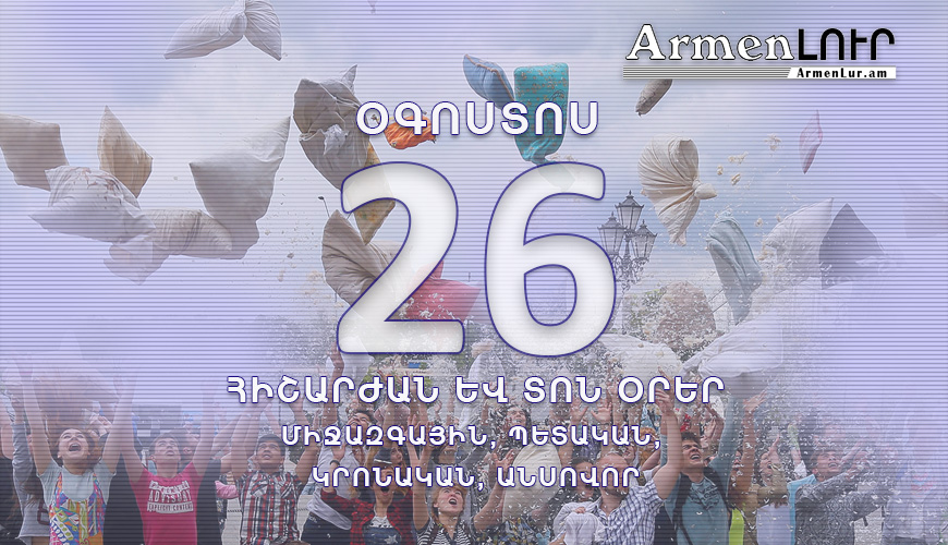 Օգոստոսի 26-ը Պարան ձգելու, Երաժշտական յոգայի, Զուգարանի թղթի, Կանանց հավասարության, Կին ծրագրավորողների, Բալի համով մրգային սառույցի, Շների, Դերասանների, Տասներեքերորդ կատվի, Փոքրիկ գաղտնիքների բացահայտման օրն է։