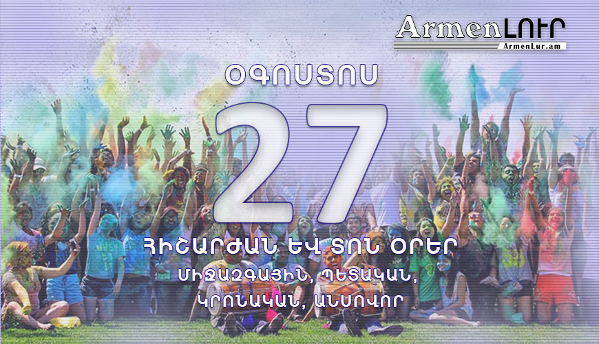Օգոստոսի 27-ը Վիճակախաղի, Երբեք չեղած հերցոգուհու, Բանանի սիրահարների, «Հենց այնպես»-ի, Տարայով կրեմի, Կանանց ապստամբության, Բուրգերի, Ռուսական կինոյի, Թռչող ամպերի օրն է։