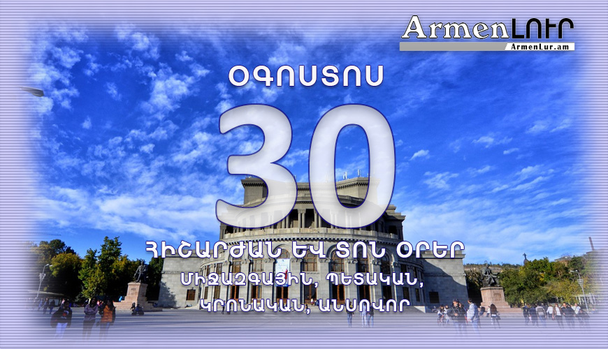 Բոլոր տոները. 30 օգոստոս