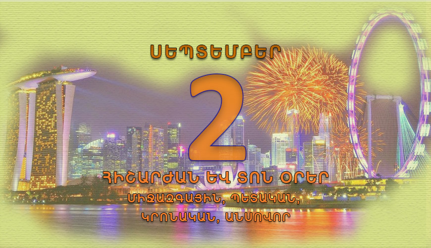 Սեպտեմբերի 2-ը Կոկոսի, Տաղանդներ գտնելու, Մրտենական հապալասի համով մրգային սառույցի, Գրիթսով նաշաճաշելու, Օրացույցը խմբագրելու, Բիզոնի տաս կաղկանձի, Վենետիկի կինոփառատոնի, «Օնամ» փառատոնի, Ուրվականների փառատոնի, Թևերում ազատ քամու օրն ...