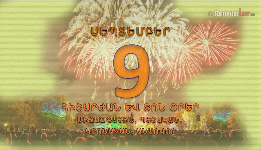 Սեպտեմբերի 9-ը Գեղեցկության, Սուդոկուի, Հրաշալի հրաշագործների, Փափուկ արջուկի, Վիենական շնիցելի, Լուռ մնալու, Կծու սթեյքի, Ուտելիք սիրելու, Երեխաների, Քրիզանթեմների, Գրաֆիկ դիզայների, Սոխի, Նոր սովորույթներ ձեռք բերելու օրն է։