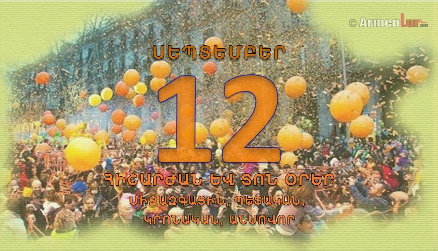 Բոլոր տոները. 12 սեպտեմբեր