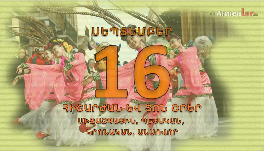 Սեպտեմբերի 16-ը Քարերի հավաքածու կազմելու, Խորթ ընտանիքների, Աշխատող ծնողների, «Play-Doh» պլաստիլինի, Դարչինով և չամիչով հացի, Դպրոցական ուսապարկի, Դեռահասներին վարժեցնելու, Անլեգալ խմելու օրն է։